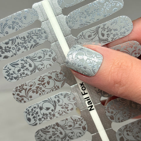 Silver Damask Exclusive Design Nail Wraps (FOIL)